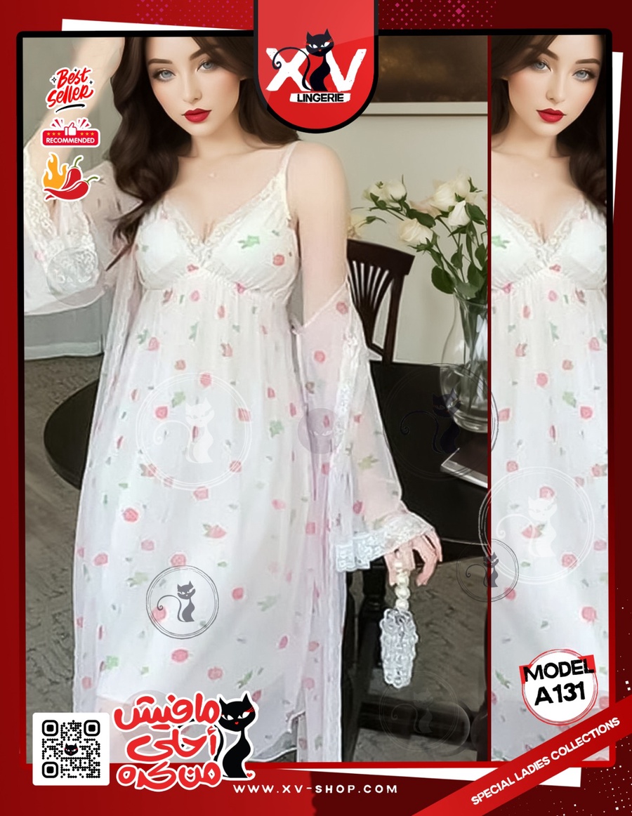 فستان كاش بيتي طويل مع روب أنيق، مزين برسومات فراولة جذابة، خامته ناعمة ومرنة لتوفير راحة كاملة، تصميمه شيك وجريء يضيف لمسة مثيرة وأنثوية، مثالي لإطلالة رائعة داخل البيت.