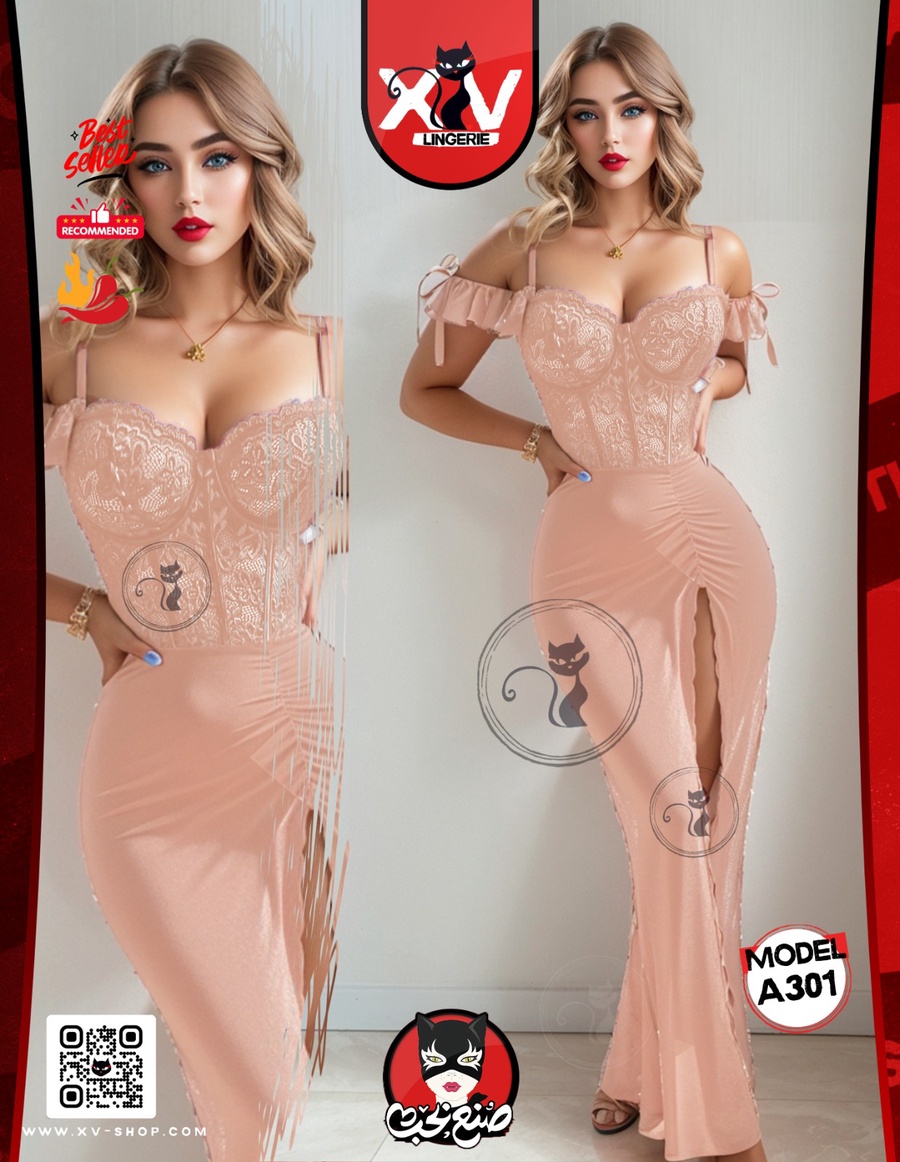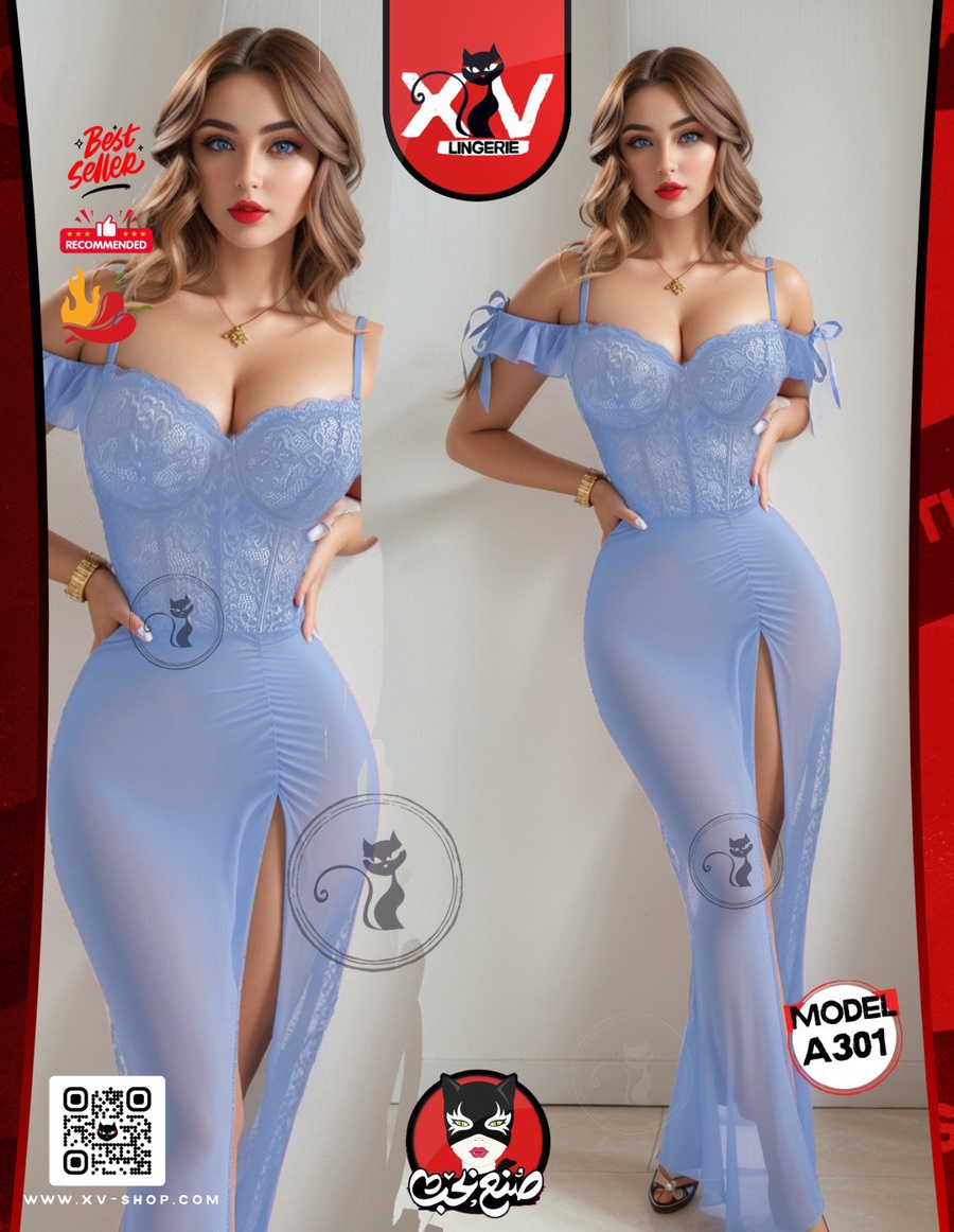 فستان لانجيري طويل من الدانتيل الناعم بتصميم أنثوي راقي، مزود بفتحة من الرجل بتدي لمسة جذابة وشيك، مع حمالتين بيكملوا الشكل بأناقة. خامته مريحة وتفاصيله هادية تناسب الذوق الراقي داخل البيت.