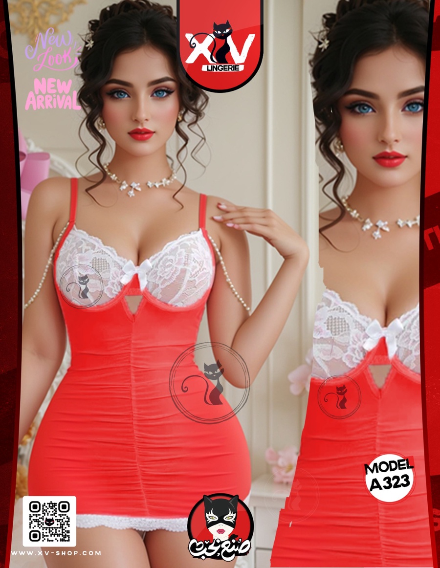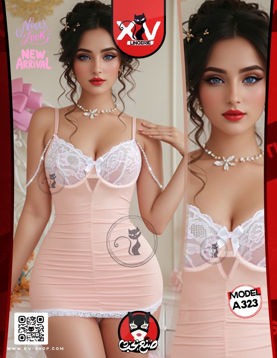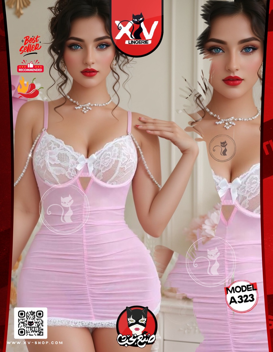 بيبي دول بينك من التل، مشدود على الجسم لإبراز القوام بشكل مثالي، مع برا دانتيل بيضاء تظهر الصدر بأناقة وجاذبية. الخامة ناعمة ومريحة، والموديل مثالي لمحبي الإطلالة الرقيقة والجريئة داخل البيت.