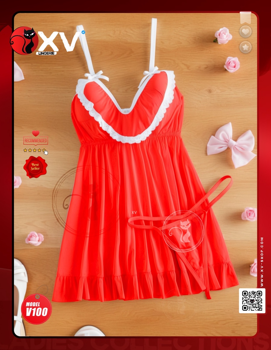 بيبي دول أحمر مع لمسة بيضاء أنيقة عند الصدر، تصميم جذاب يبرز القوام بشكل أنثوي ملفت. الخامة ناعمة ومريحة، والموديل مثالي لمحبي الستايل الجريء والمثير داخل البيت.